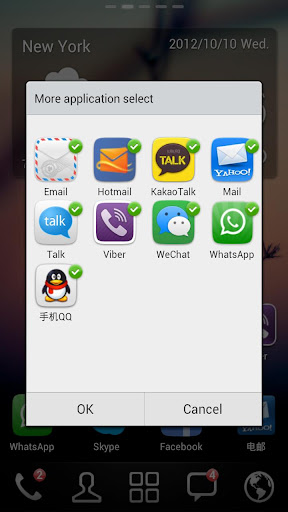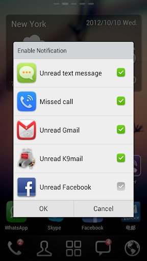 - Support calls, unread SMS, Facebook, Twitter, Gmail, Whatsapp, Viber, Kakao Talk, Viber, Google Talk, Native Mailbox, Skype, Yahoo Mail, Hotmail, WeChat.